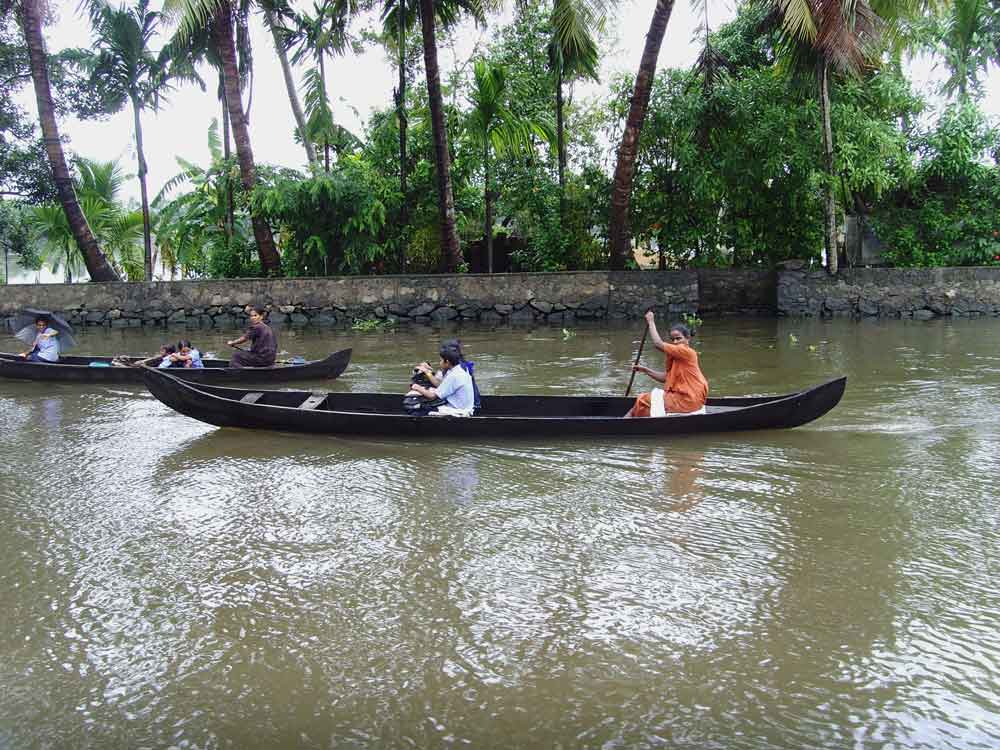 Cruising through the narrow canals the chances of one coming across some of the unique and interesting vistas on and along the canals are simply inspiring. This could come in the form of panoramic paddy fields; coconut lagoons; pied King Fishers hurtling down to catch fish etc. Among other common sights that one would come across during the cruise are isolated islands; men on country boats engaged in fishing and shepherding their ducks to new pastures, cargo being moved in huge boats called rice barges or Kettu Vallams and school children being ferried across the canal…